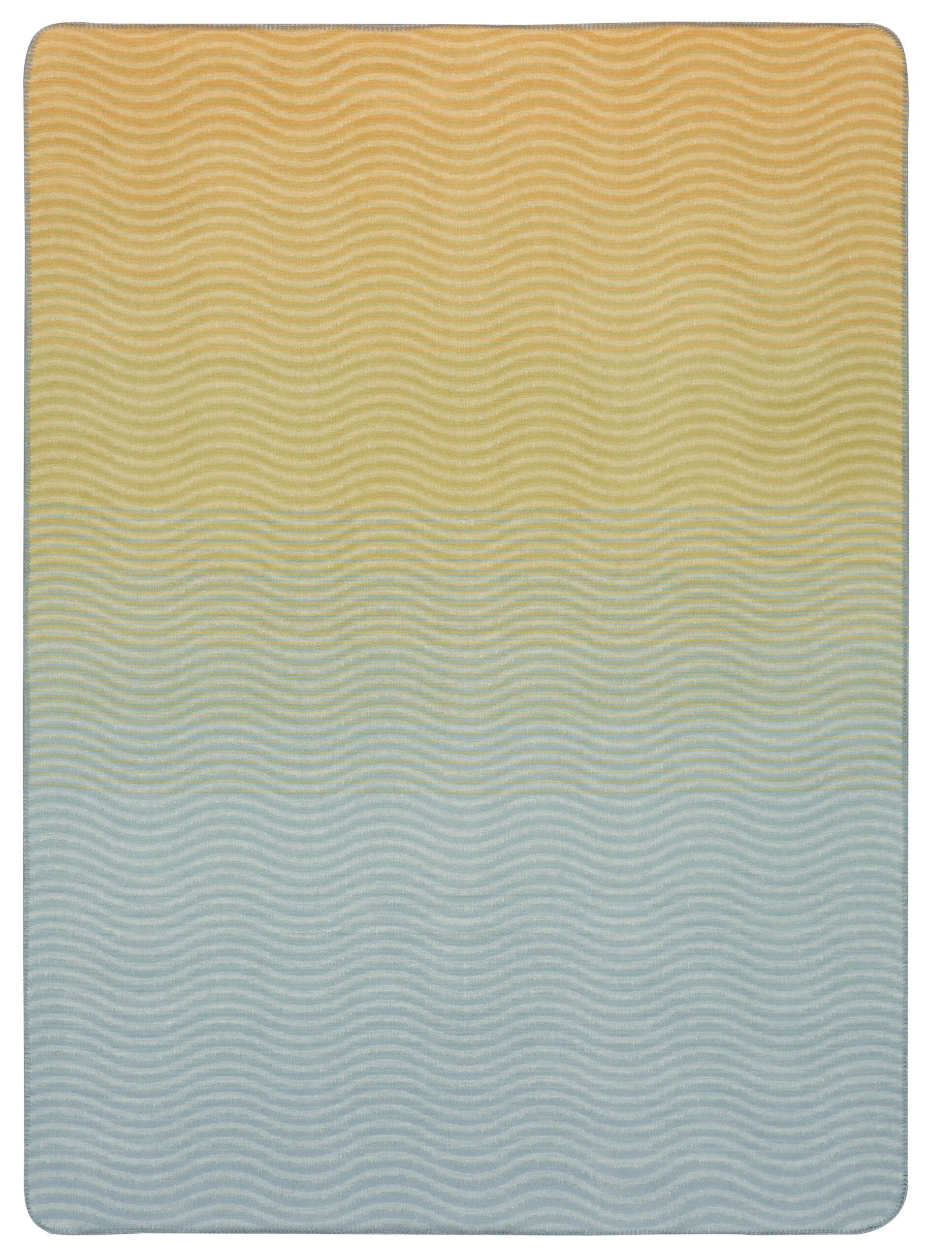 Die Biederlack Wohn- und Kuscheldecke „Ocean Nuance“ bringt das Gefühl von Sommer, Meer und Strand direkt in Ihr Zuhause. Das lebendige Wellendessin wird durch einen harmonischen Farbverlauf von sanftem Himmelblau zu warmem Sonnengelb ergänzt. In der Mitte treffen beide Farbtöne aufeinander und erinnern an das Zusammenspiel von Ozean und Sandstrand – ein Design, das Urlaubsstimmung und Leichtigkeit ausstrahlt.